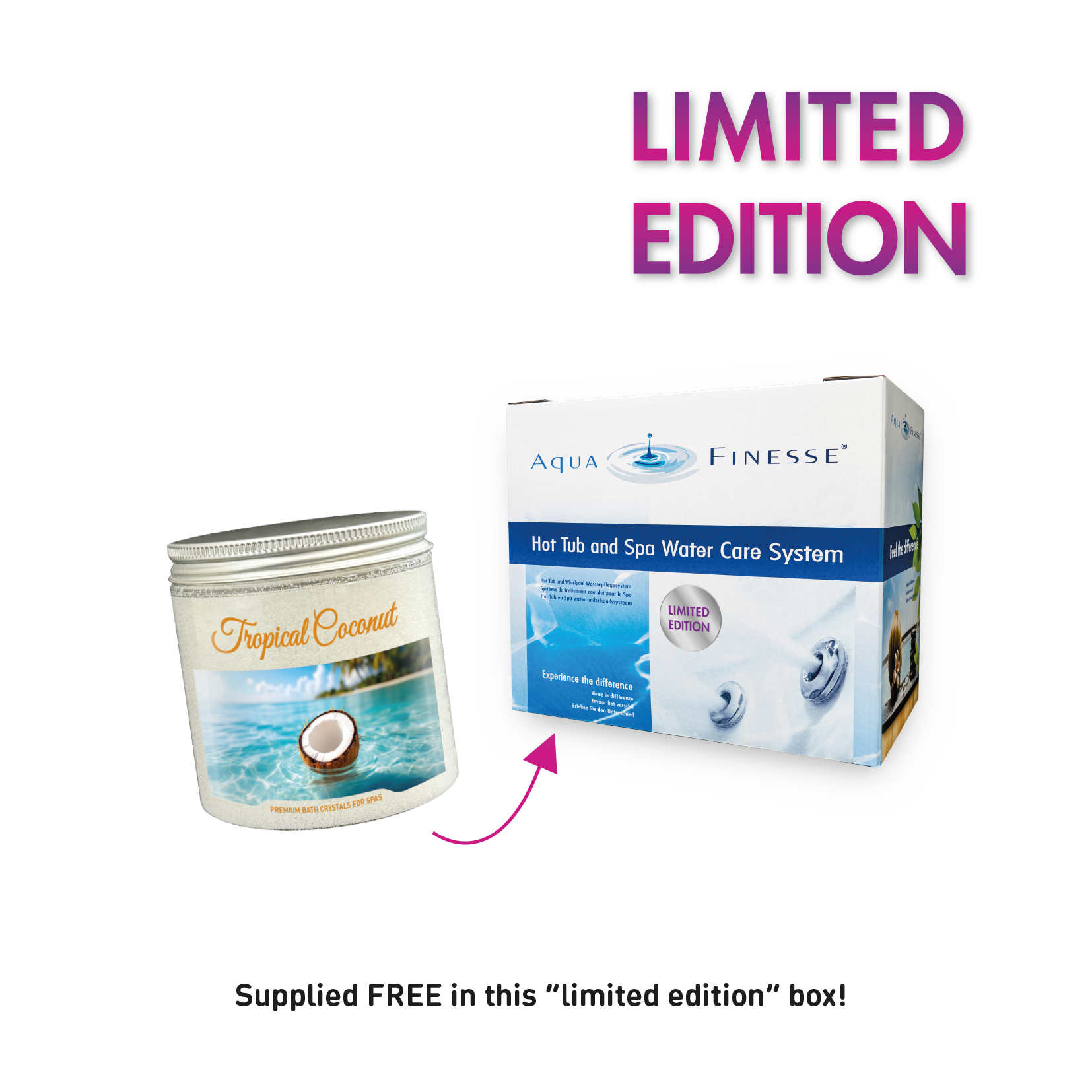 De AquaFinesse hot tub waterbehandeling set bevat alles wat u nodig heeft voor de waterbehandeling van uw spa. Met slechts één dosis per week zorgt AquaFinesse voor schoon en helder water! AquaFinesse maakt daarnaast het water in uw hot tub zachter door de kalk uit de apparatuur van de hot tub te verwijderen.
